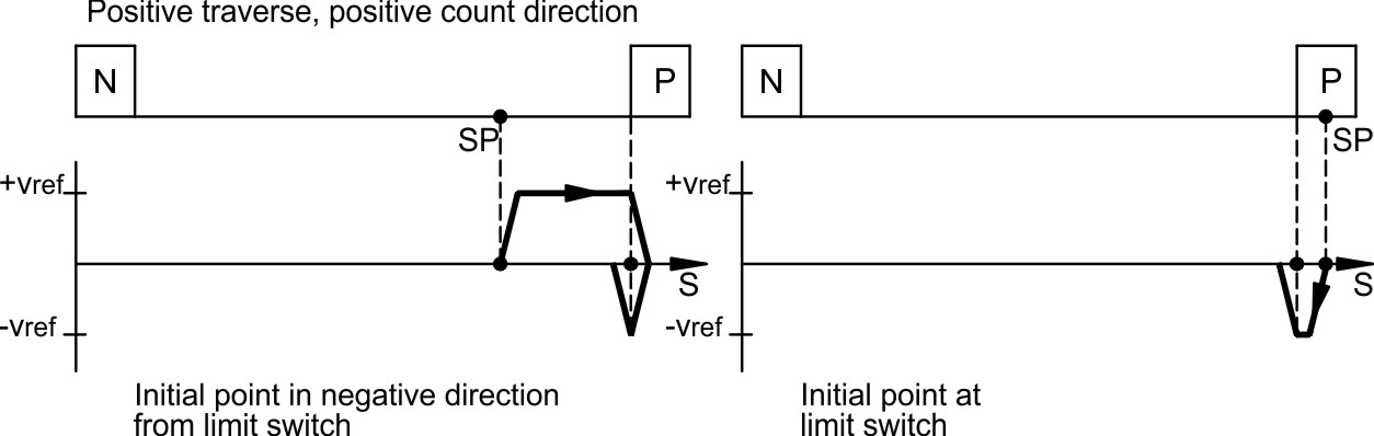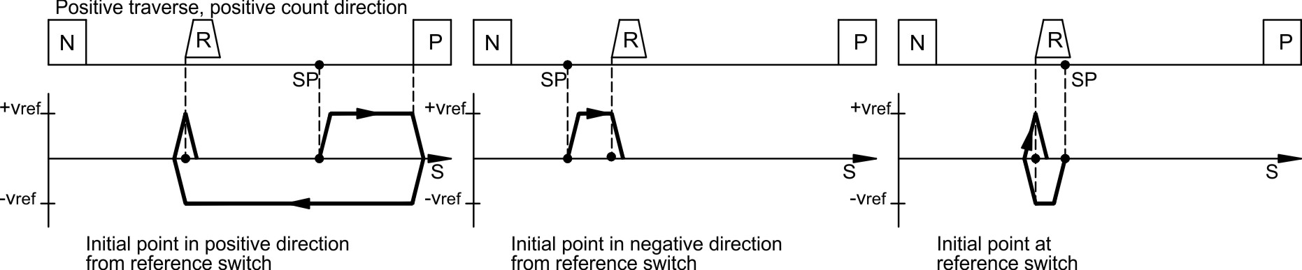Homing (reference traverse) is an absolute task that is used to zero the drive for subsequent positioning operations. You can choose between various types of homing.