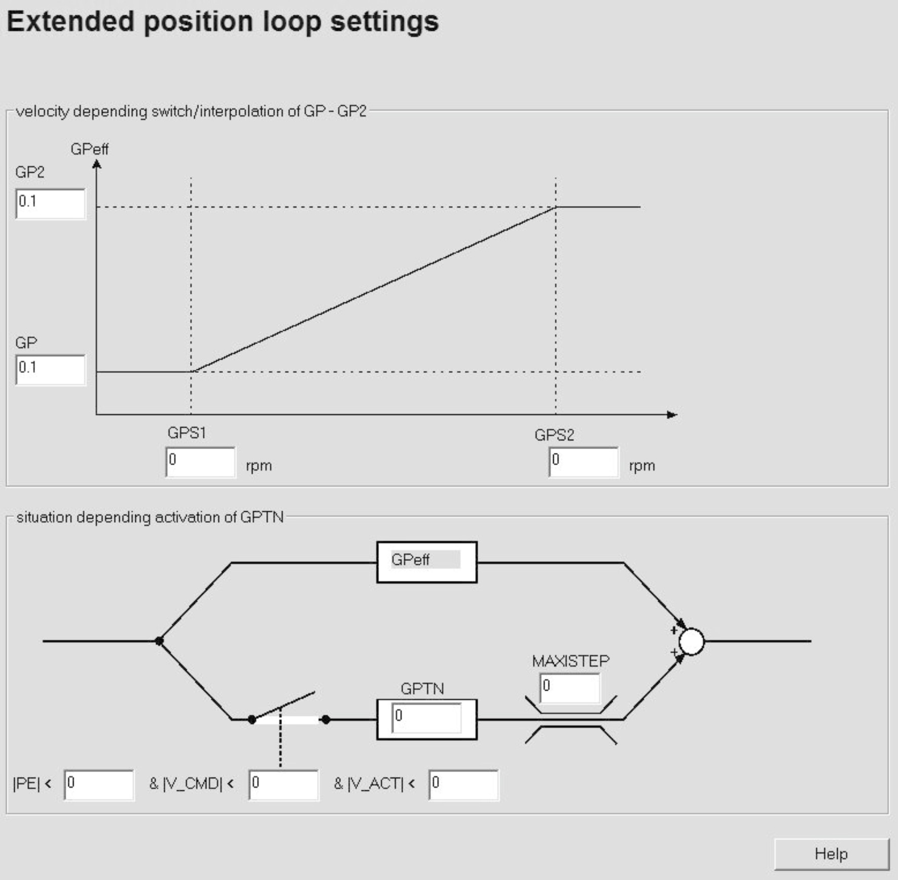 The lower diagram allows you to connect an integral component for position control, dependent upon tracking errors and speed.
