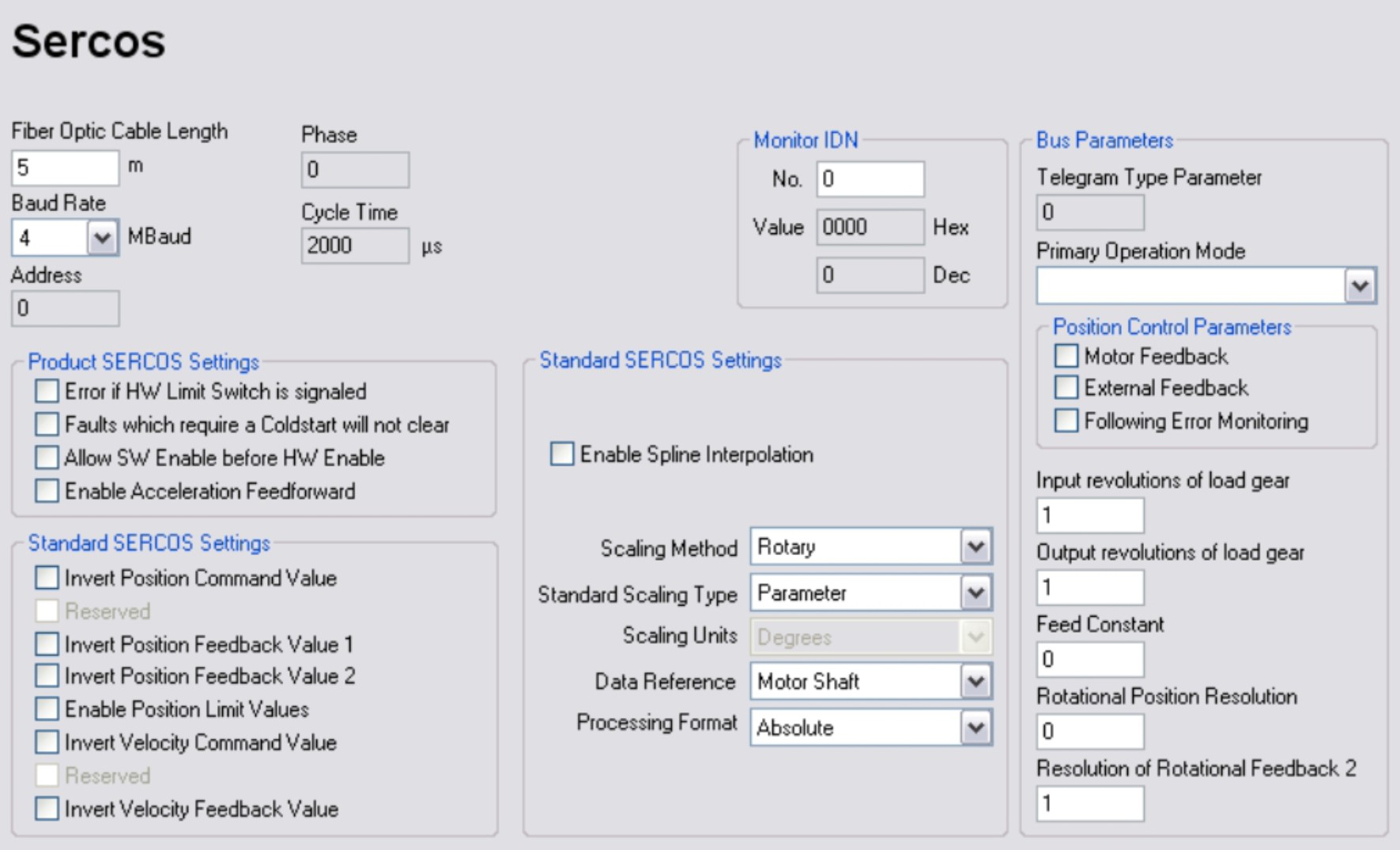 This screen is avalable only if a SERCOS expansion card is inserted into the servo amplifier.