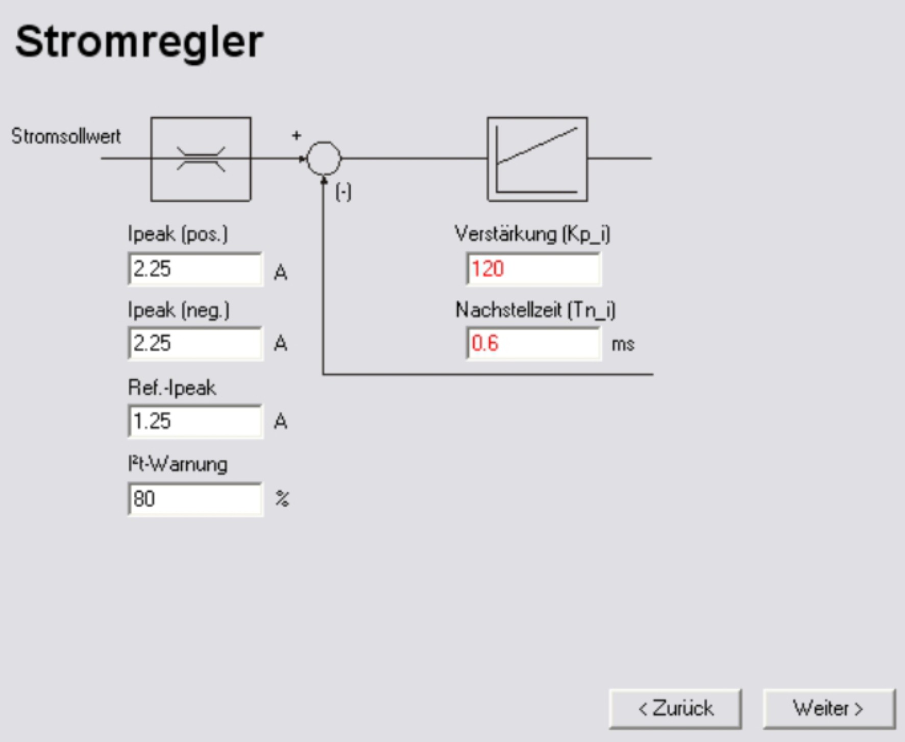 Parameter für die Optimierung des Stromreglers. Änderungen meist nicht erforderlich, wenn die korrekten motorbezogenen Daten aus der Datenbank geladen wurden.