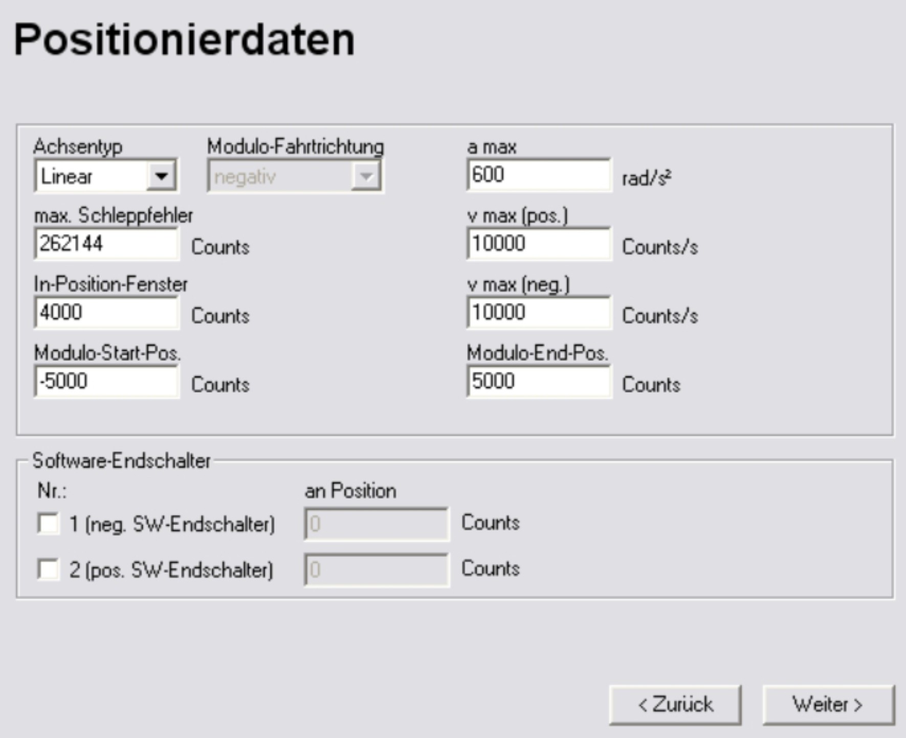 Die prinzipielle Position der Software-Endschalter sehen Sie in der Abbildung unten: