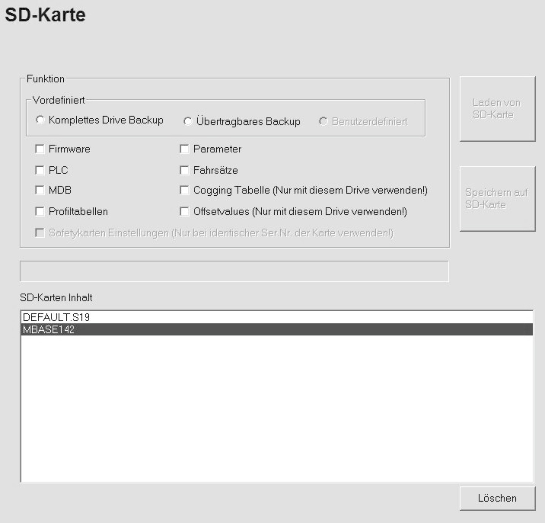 Übertragbares Backup (FW, PLC, MDB, PT) |