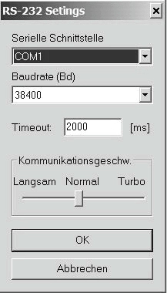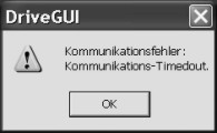 Wird erstmalig eine Kommunikation aufgebaut, werden Sie aufgefordert, die Kommunikationsparameter einzustellen. Wählen Sie das Kommunikationssystem und die Schnittstelle (COM1 … COM10), an die der Servoverstärker angeschlossen ist, stellen Sie die gewünschte Baudrate sowie die Geschwindigkeit ein und Klicken Sie auf OK. Die Software versucht nun, eine Verbindung zum Servoverstärker aufzubauen. Wenn keine Kommunikation zustande kommt, erhalten Sie diese Fehlermeldung. |