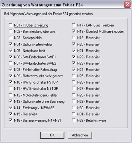 Zur Definition der Fehlermeldung F24 (Bitvariable WMASK, siehe auch Kapitel Fehler- und Warnmeldungen).