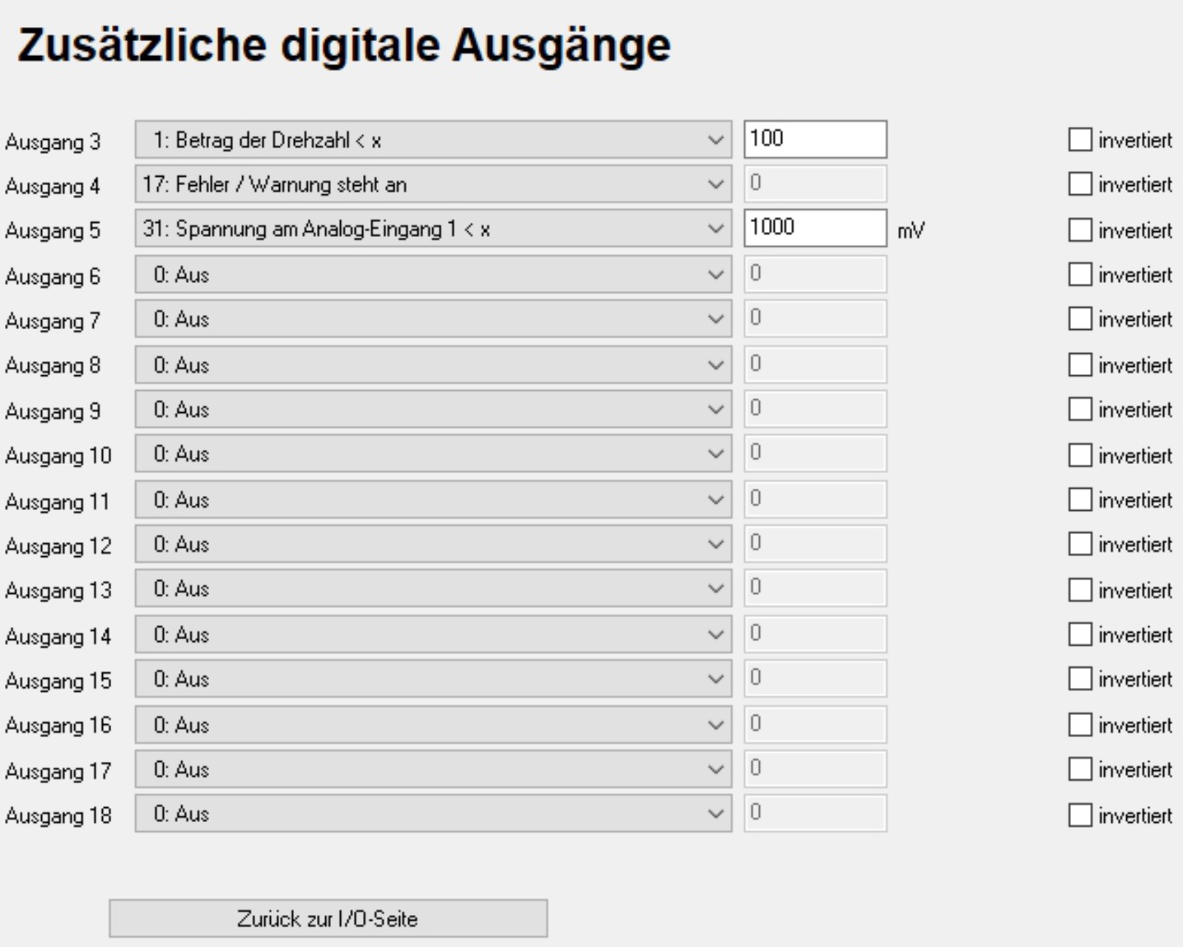 Je nach vorhandener Hardware-Konfiguration sind diese Ausgänge der I/O-Erweiterungskarte bzw. den virtuellen Software Ausgängen zugeordnet.